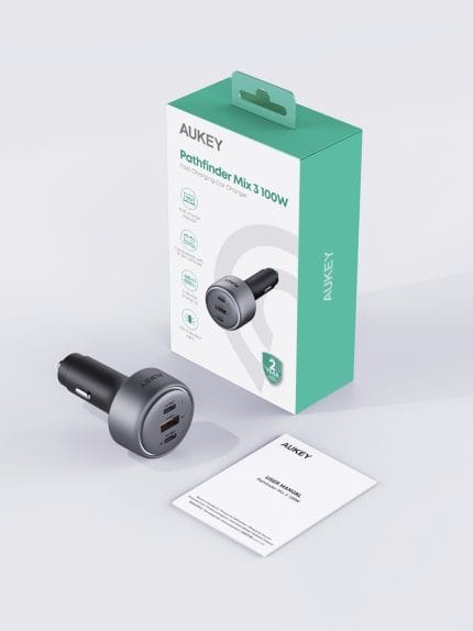 أوكي Pathfinder Mix 3 شاحن سيارة 100 واط PD مدخلين USB-C ومدخل USB-A موديل CC-P3 ، ضمان عامين