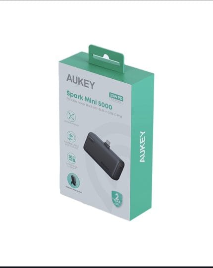 أوكي بطارية متنقلة PB-Y59-GY سبارك ميني بقوة 20واط ، سعة 5,000 ملي أمبير ، مع منفذ USB-C مدمج قابل للطي , ضمان عامين